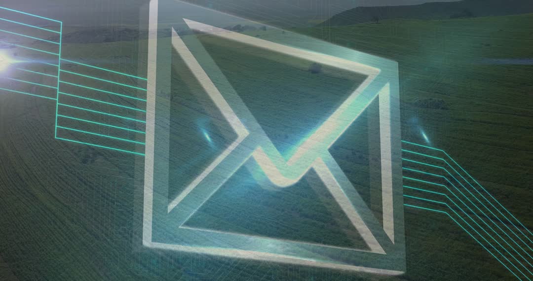 - Conceptual Digital Communication Overlay on Green Landscape Background