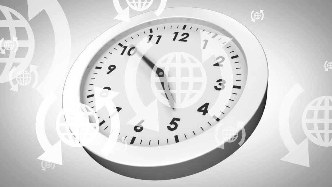 - Conceptual Global Time Management Animation with Clock and Arrows