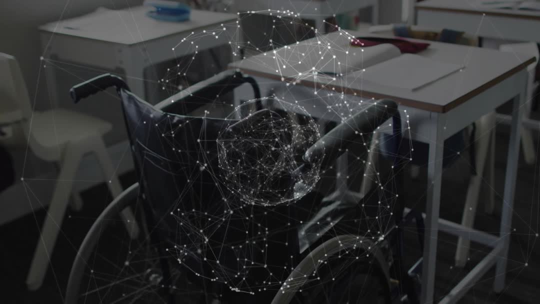 - Conceptual Network Sphere Over Wheelchair in Modern Classroom
