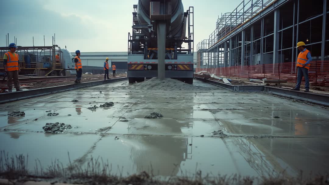 - Concrete Pouring at Modern Industrial Building Site