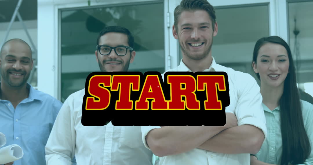 Confident Diverse Team with Dynamic START Text On Green Screen Video