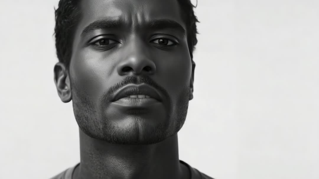 Confident Male Model with Defined Features in Minimalist Portrait Video