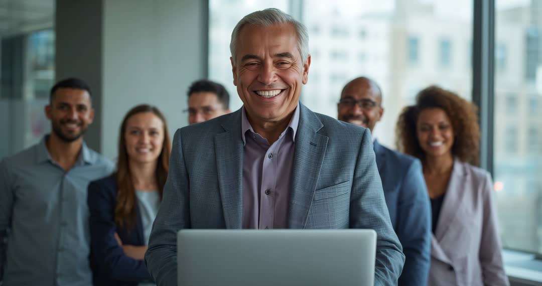 AI Generated Image. Confident senior manager presenting a report to a diverse team in a corporate setting. Featuring a professional leader working with colleagues in a modern office environment, this visual reflects themes of leadership, teamwork, and business collaboration. Useful for illustrating corporate culture, professional presentations, and executive interactions.