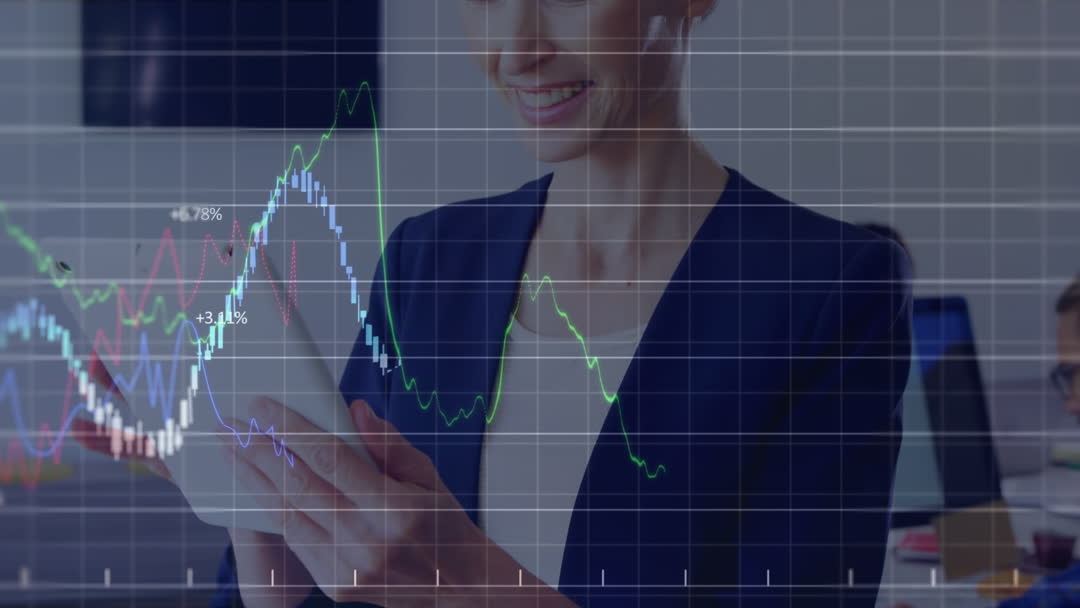 Consultant Using Tablet with Financial Stock Data Overlay Video
