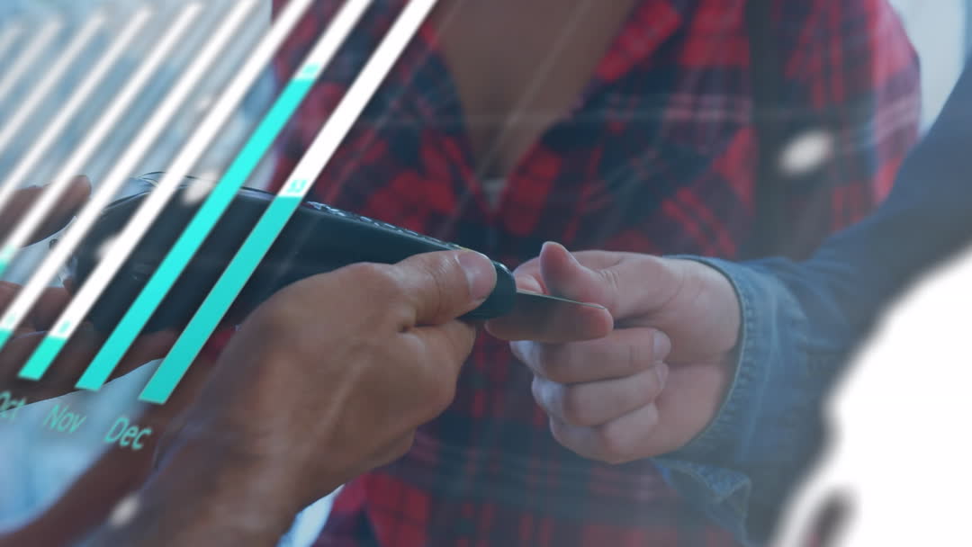 Contactless Payment Interaction with Financial Graph Overlay Video