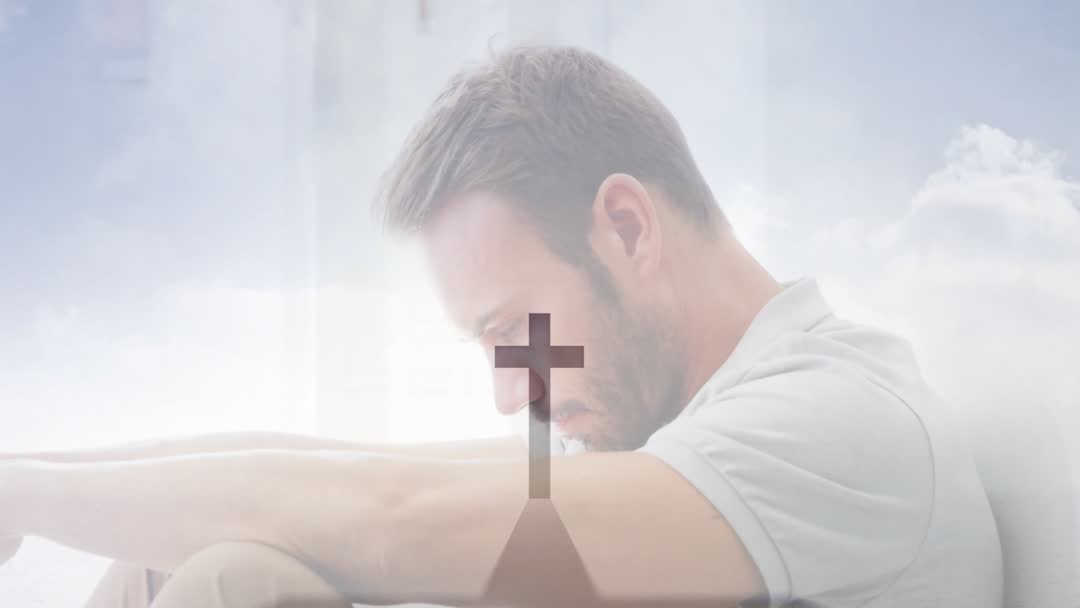 Contemplative Man Praying with Cross Overlay Video