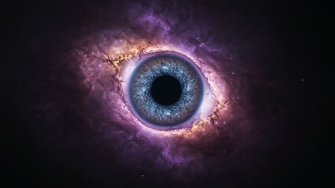 AI Generated Image. AI-generated visual from a video portrays an ethereal cosmic eye, blending human anatomical features with celestial grandeur. Mist-shrouded nebulae form a floating eyeball among sparkling stars. Prolific use includes sci-fi contexts, astronomical documentaries, holistic or visionary presentations and creative works addressing philosophies of understanding or human knowledge. Particularly effective as captivating illustration or animated sequence introductions.