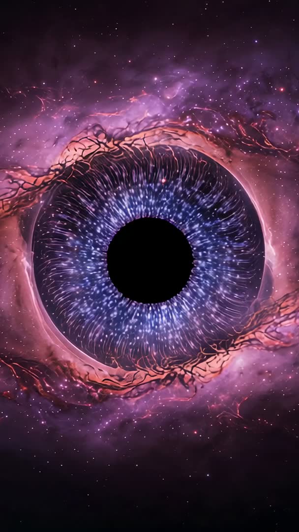 - Cosmic eye vortex pulsing through purple nebula with radiant blue filaments | Vertical video