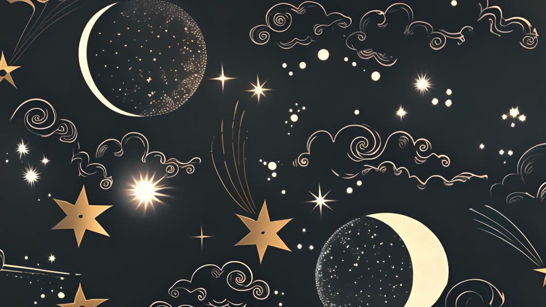 - Cosmic Night Sky with Celestial Bodies and Clouds
