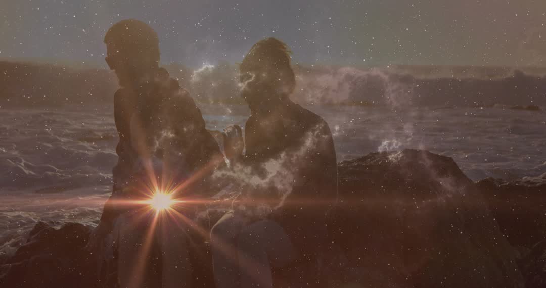 The dreamy and expansive feel of this scene captures the imagination with silhouetted figures against a cosmic background. The sparkling starburst and galaxy elements can bring a mystical touch to projects needing a hint of the extraordinary. This can be a captivating backdrop for creative, spiritual, or futuristic themes in digital arts, inspirational posters, or multimedia presentations.