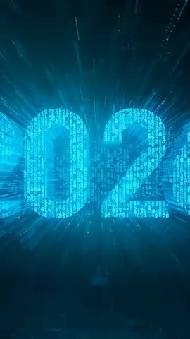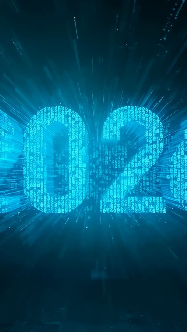 AI Generated Video. Vertical clip showing 02 forming from thousands of tiny alphanumeric characters in teal neon glow, conveying high-speed countdown energy. Suited for tech product launches, livestream intros, app splash screens, social media vertical ads, and event openers. Use with upbeat electronic soundtrack, digital stinger hits, and bold sans-serif title overlays to amplify futuristic mood. Loopable frames allowing seamless countdown repetition or edit into longer motion graphics sequences. Color grading suggestions: boost teal highlights, add soft vignette to focus digits, increase contrast for sharper binary detail. Deliverable tips: export MP4 or MOV in 9:16 vertical format for mobile platforms, provide transparent HUD overlays for compositing, and include short variants for social story ads.