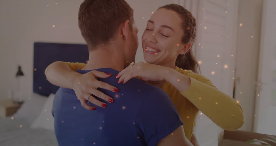 - Couple Embracing With Golden Sparkles Displaying Love and Intimacy