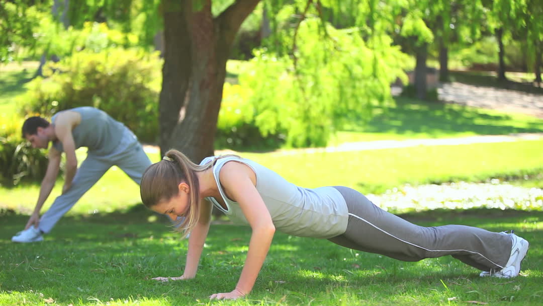 - Couple Engaged in Outdoor Fitness Routine on Sunny Day