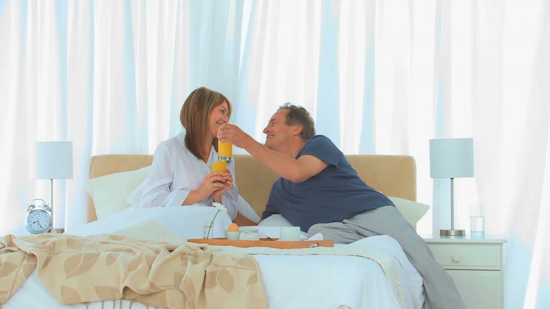 Couple Enjoying Breakfast in Bed with Joyful Connection Video