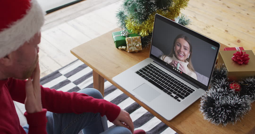 - Couple Enjoying Festive Video Call Sharing Holiday Joy