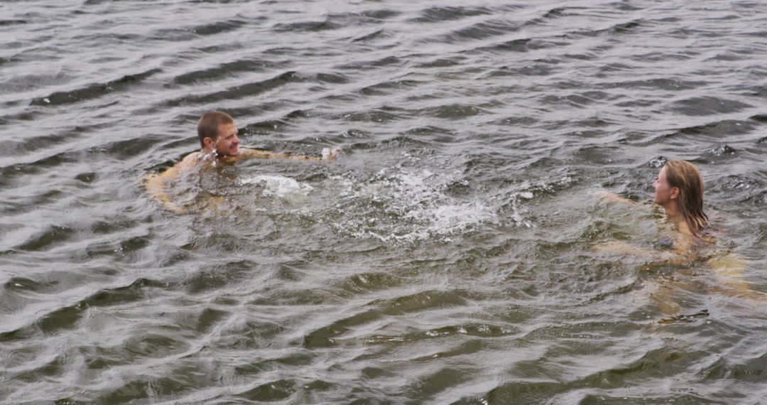 - Couple Enjoying Mountain Lake Swim on Adventure