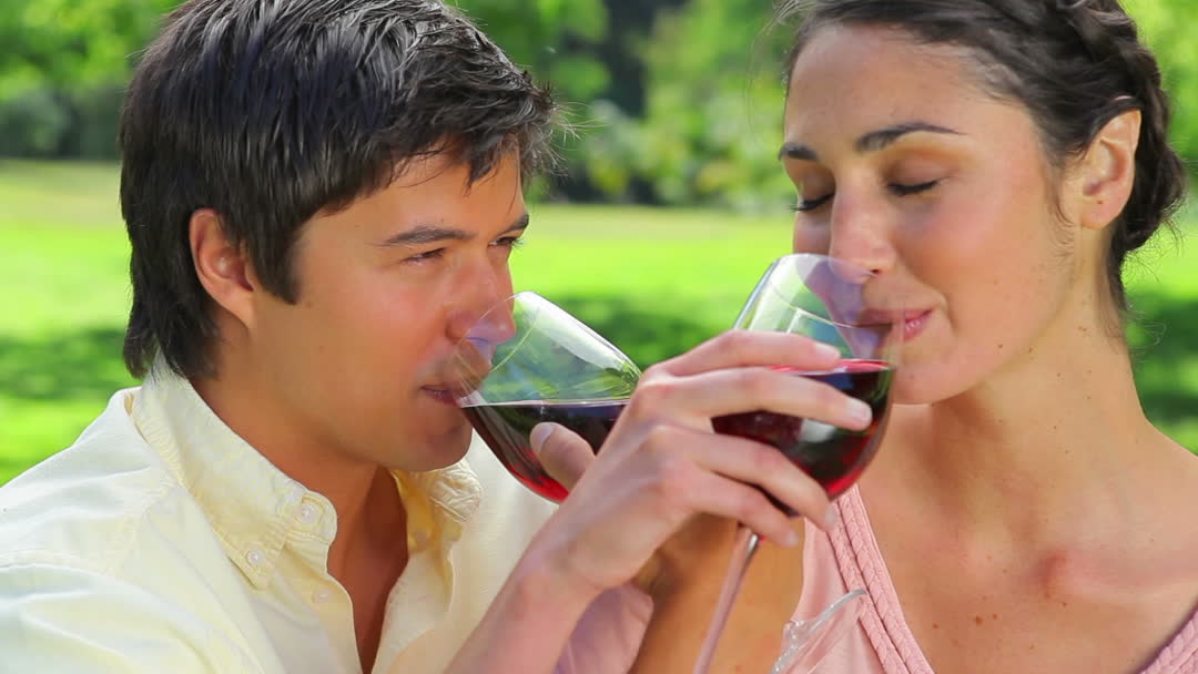 - Couple Enjoying Red Wine on Warm Countryside Day