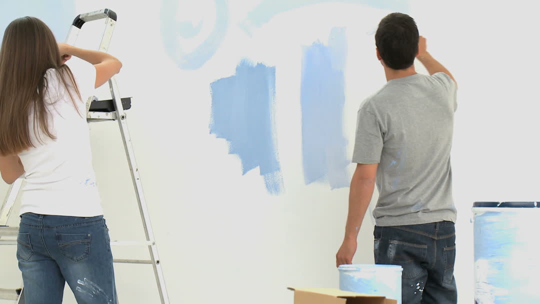 Couple Painting Azure Walls in New Home Video