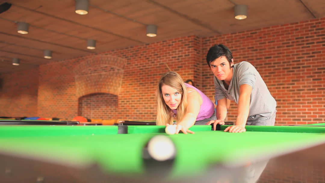 Couple Playing Pool in Leisure Room Video