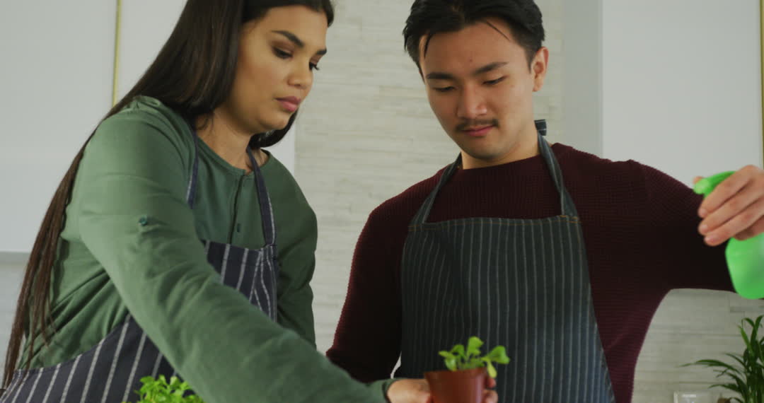 - Couple Potting Plants Together in Home Setting