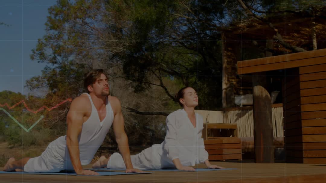 - Couple Practicing Yoga Outdoors with Dynamic Fitness Graph Overlay