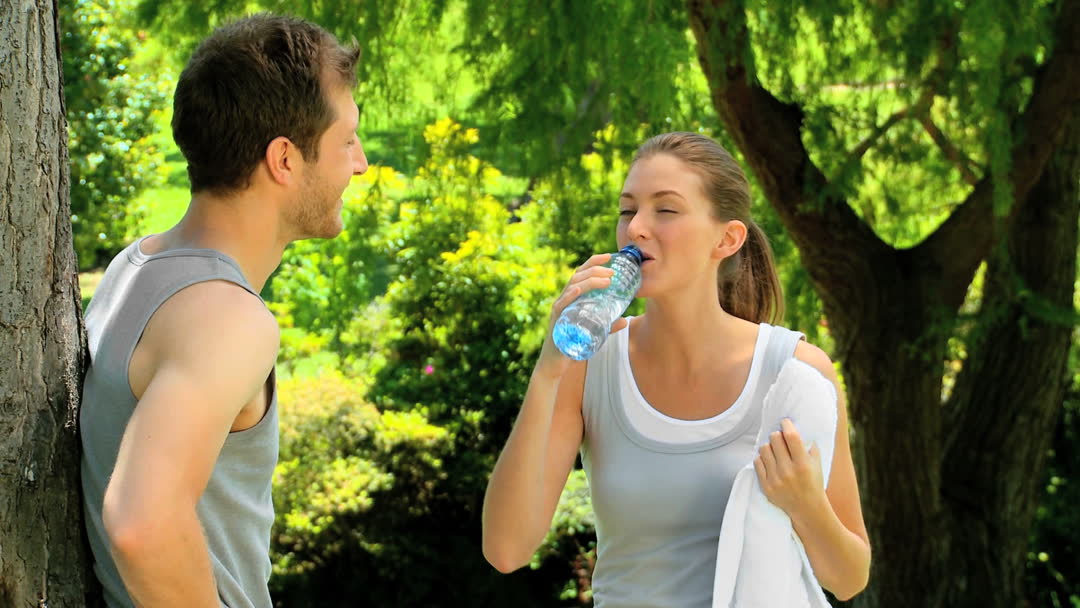 - Couple Relaxing and Staying Hydrated After Outdoor Exercise