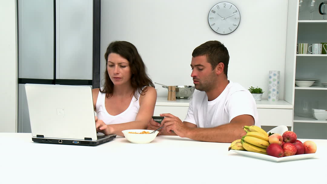 - Couple Shopping Online with Credit Card in Modern Kitchen
