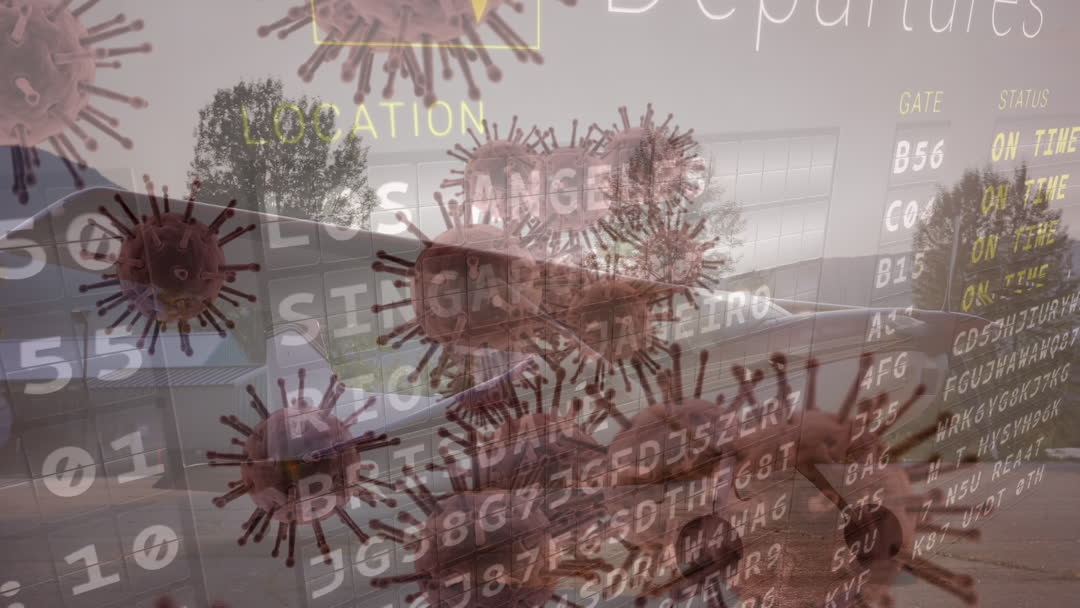 - COVID-19 Travel Restrictions at Airport with Virus Overlay