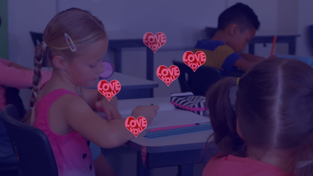 - Creative Animation of Hearts Over Children Learning In Classroom