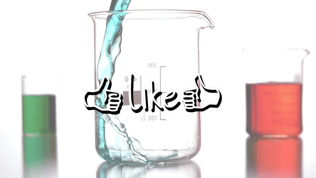 Science-themed animation featuring beakers with colorful liquids and overlay of 'like' icon makes it ideal for scientific presentations and online content covering concepts in chemistry and digital innovation. Useful in educational materials and webinar presentations to grab attention.