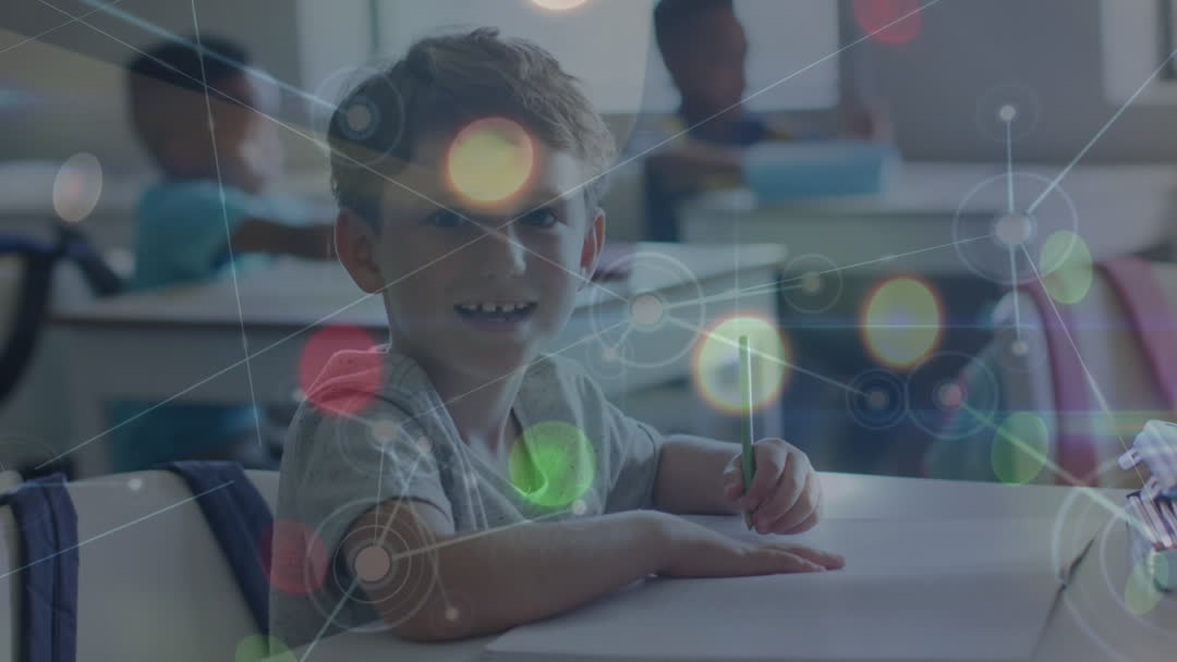 href="https://pikwizard.com/video/creative-connection-child-surrounded-by-digital-patterns-in-classroom/7175b929d0d5446eceea89f74dac42d4/"