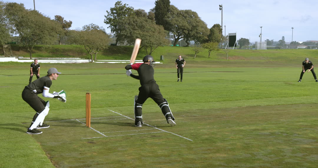 This video captures a thrilling moment in a cricket match with the batsman actively swinging at the ball while the wicketkeeper stands ready. Excellent for illustrating competitive sports energy and teamwork outdoors. Ideal for use in sports marketing materials, athletic training resources, or articles about cricket dynamics.
