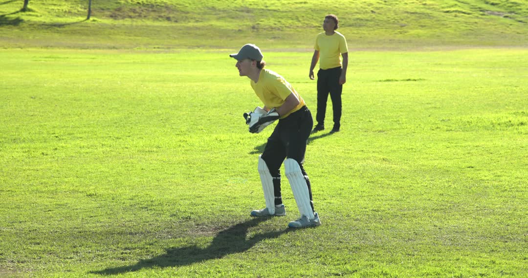 - Cricket Players in Action on the Field in Game