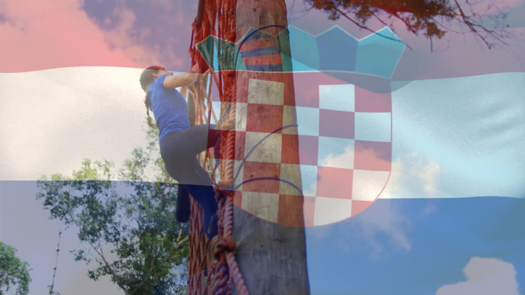 Croatian Flag Overlapping Determined Woman in Obstacle Race Video