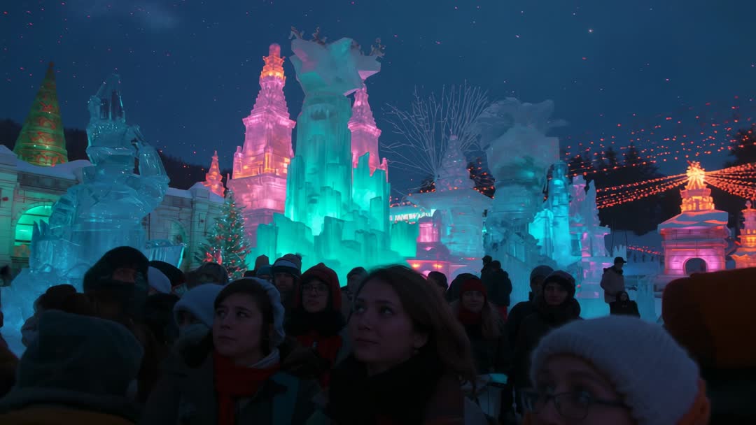 - Crowd Enjoying Winter Ice Castle Illumination Festival