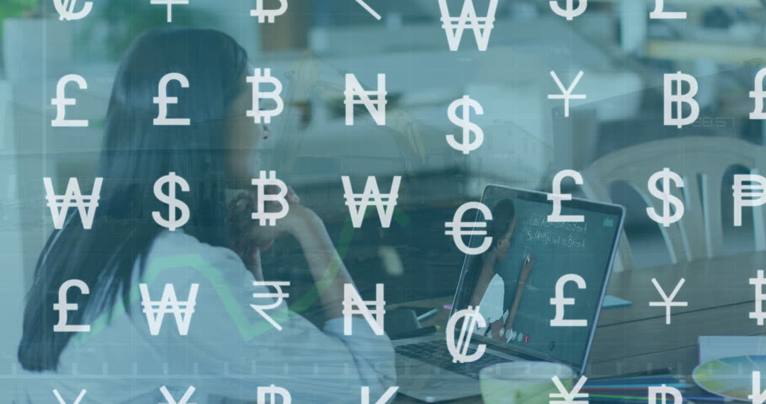- Currency Symbols Over Video Call Concept for Business and Finance