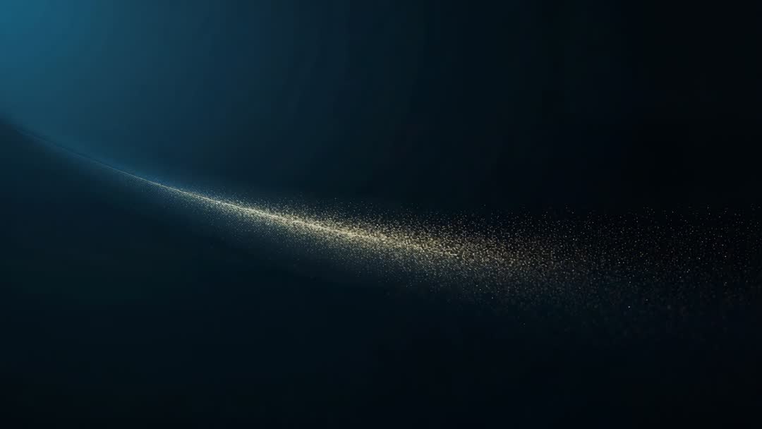 AI Generated Image. Showing curved trail of golden particles sweeping rightward over deep navy backdrop with soft blue glow. Footage presenting gradual particle dispersion and subtle bokeh highlights, creating cinematic, elegant motion suitable for title reveals and transitions. Offering 4K-ready source with loop-friendly composition, allowing seamless extension for hero banners, brand openers, or screen overlays. Working well for technology promos, luxury product presentations, financial reports, event openers, social media shorts, and broadcast lower thirds. Color grading offering deep navy tones with warm gold contrast for premium, modern look. Using as background for typography, logo reveal, web header, or ambient motion in app UI demos.