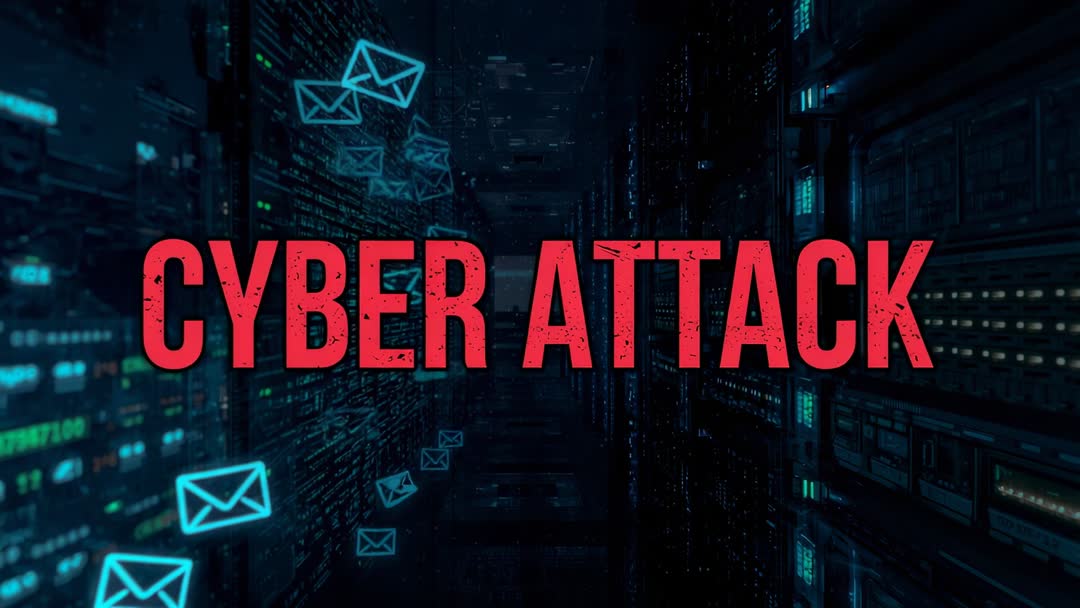 AI Generated Video. Graphic visualizing cyber attack concept with envelopes and digital data in background. Ideal for videos related to cybersecurity education, awareness campaigns, and technology news. This can be used to highlight themes of online security, data protection, and digital intelligence, emphasizing the seriousness of cyber threats in connected environments.