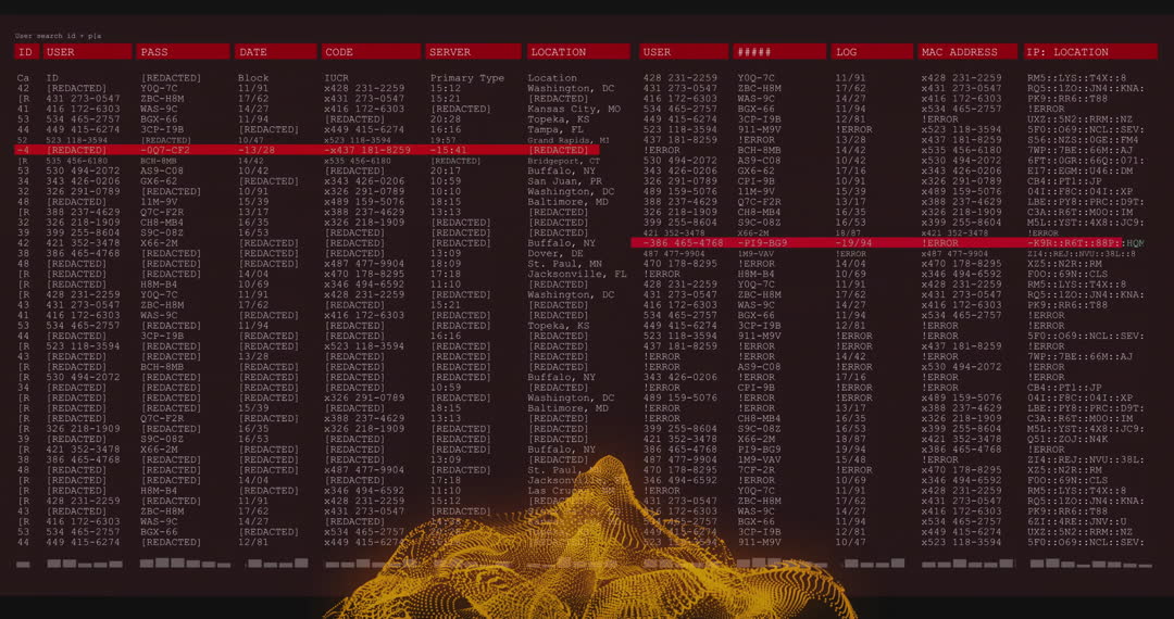 Cybersecurity display shows comprehensive data concerning user details. Background features a vivid digital wave that signifies data flow and technological progress. Useful for illustrating cyber concepts, network management, online security strategies, tech articles, or safety posters. An excellent choice for supporting narratives about data analytics and identity protection.