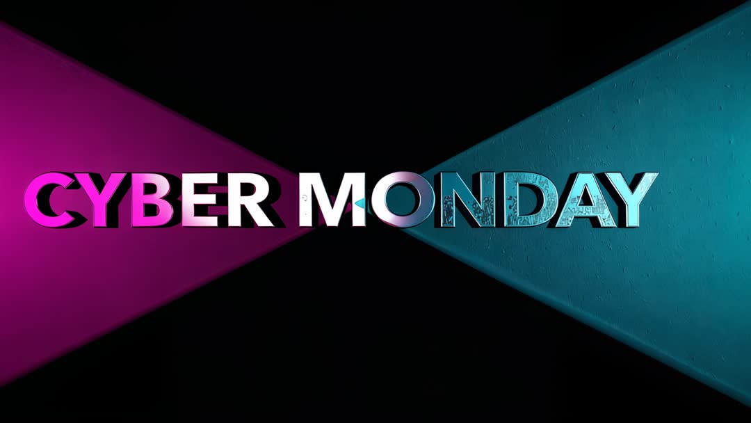 AI Generated Image. High-energy video clip showing 3D CYBER MONDAY typography splitting into magenta and cyan light beams, revealing metallic chrome finish and glossy reflections. Dark background enhancing contrast and neon color pop for bold visual impact. Motion-friendly composition allowing seamless integration into online sale promos, email headers, social media ads, website hero banners, TV spots, in-store displays, countdown screens. Editable layout supporting overlays for prices, discount tags, logos, call-to-action graphics. Ideal for retail and e-commerce campaigns promoting electronics, tech accessories, fashion drops, holiday deals, and seasonal marketing pushes.