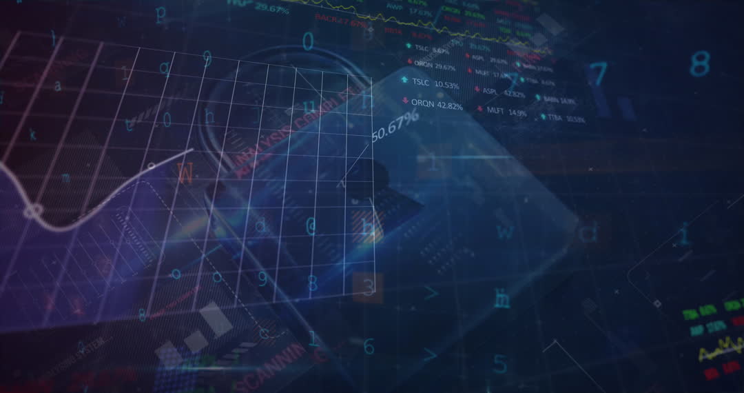 This video captures a futuristic blend of cyber security and stock market data analysis, symbolizing modern digital financial environments and technology impact. Effective for illustrating themes around cyber security, digital economies, and financial technology. Ideal for use in articles focused on financial technology innovation, cyber threats to market stability, or economic digital transformations.