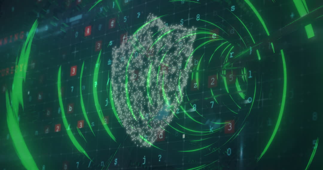 Conceptual video of data visuals representing global connectivity and information technology. Useful for illustrating technology topics, digital security, and global business. Ideal for use in presentations on cybersecurity and data analytics.