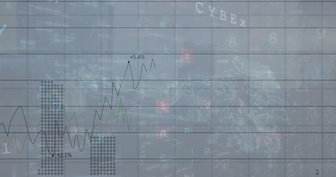 Representation of cybersecurity threats and financial data processing. Useful for illustrating concepts in cyber safety, data security strategies, global communication discussions, and digital finance evolution.