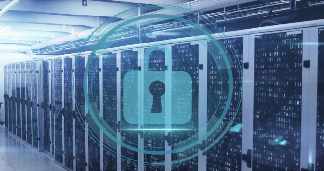 This visual emphasizes cybersecurity with a focus on data protection and technology infrastructure. It represents modern safeguards against data breaches featuring abstract symbols of technology security OVerrational computer server blades. Suitable for articles, blogs, and presentations on cyber safety, IT solutions, network protection strategies, and advancements in secure digital practices.