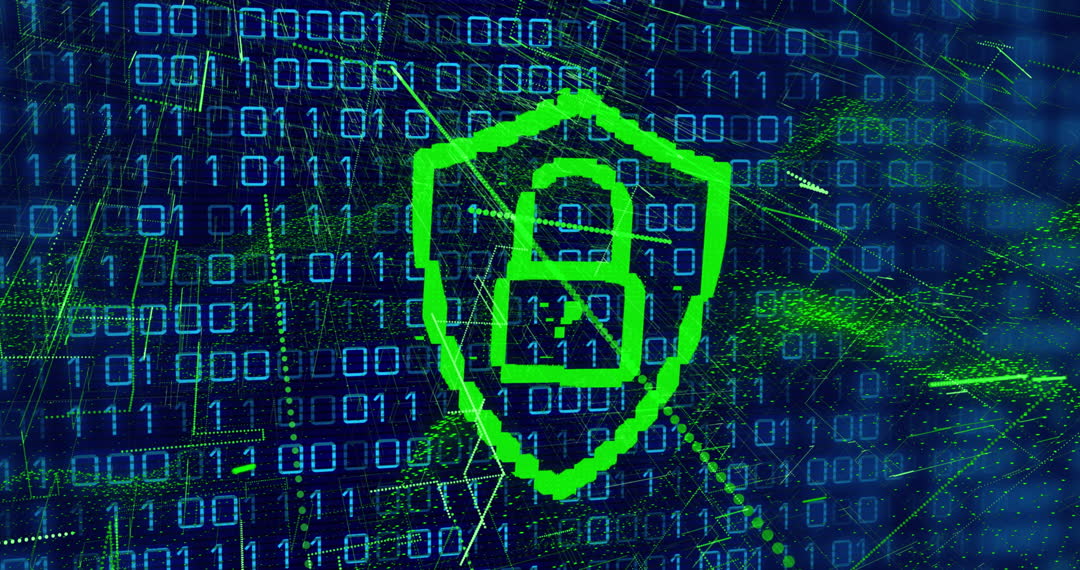 - Cybersecurity Concept with Lock and Binary Code Overlay