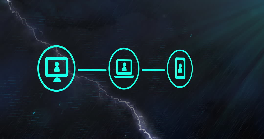 Visual concept illustrating digital connections and cybersecurity. Displays devices linked in a network flow, highlighting network communication. Useful for presentations, articles, or content emphasizing internet security and digital systems.