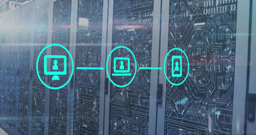 Futuristic digital icons interconnected over a server room depicting a concept of cybersecurity and data management. Can be used in technology blogs, cybersecurity presentations, or articles focused on data protection solutions for businesses.