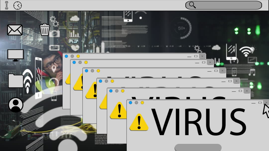 Cybersecurity Threat with Virus Alerts over Business Data Video