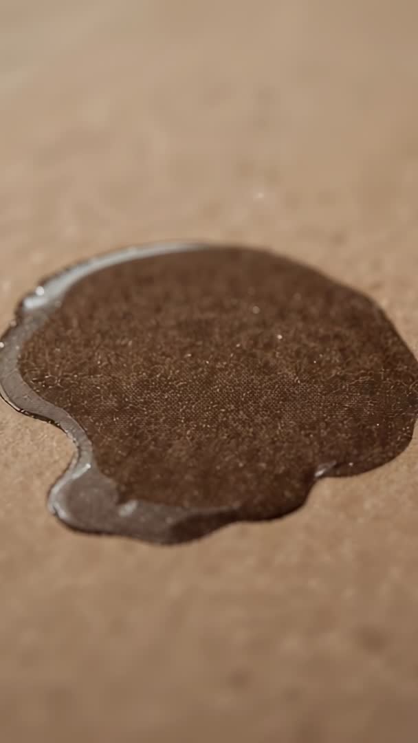 Dark brown liquid spreading on kraft paper with glossy granular texture vertical video Video