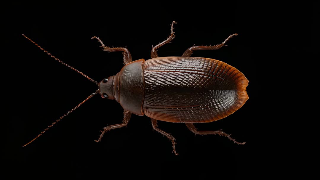 AI Generated Image. Video showcases a dark reddish-brown ground beetle with clearly defined textured elytra, moving its antennae and legs against a stark black backdrop. Useful for educational videos on entomology, biodiversity, and insect anatomy, or to emphasize the intricacies in natural textures often captured in macro photography.